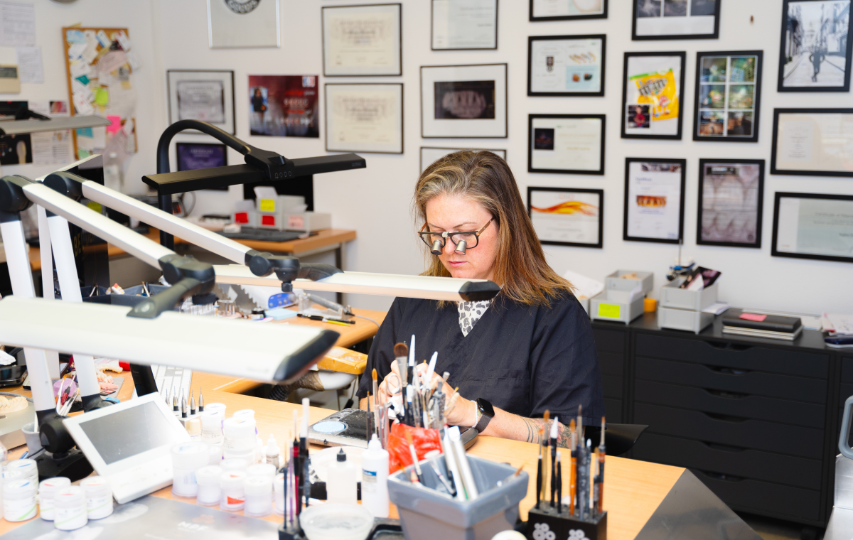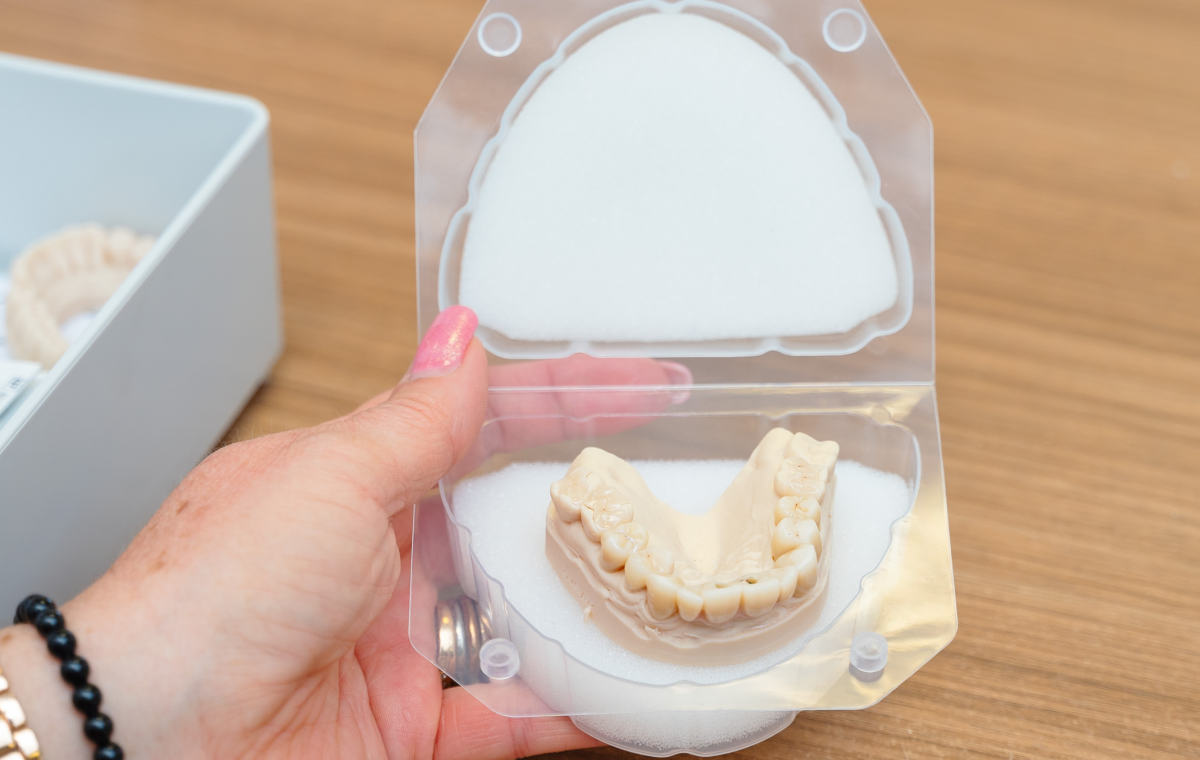 Label Dent Signature by Sophie Dallem réunit le savoir-faire d’une prothésiste passionnée et un accompagnement sur-mesure. Précise, créative et exigeante, Sophie Dallem met son expertise au service des praticiens pour créer des prothèses fixes, céramiques et réalisations esthétiques premium, adaptées à chaque sourire.